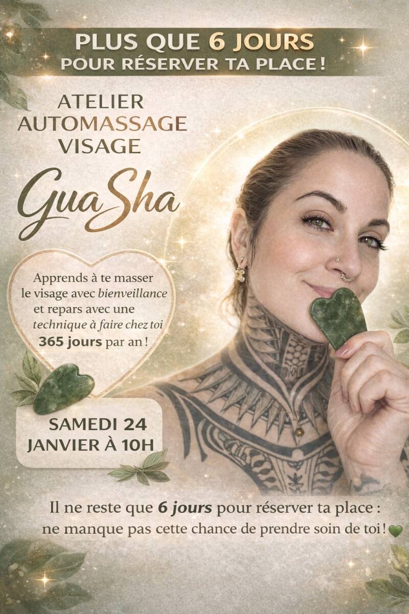 Envie de prendre soin de votre visage tout en découvrant une pratique ancestrale douce et efficace ? Rejoignez notre atelier d’auto-massage à la pierre de Gua Sha et offrez-vous un moment de détente et de bien-être.
